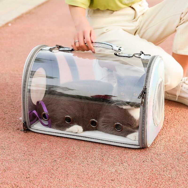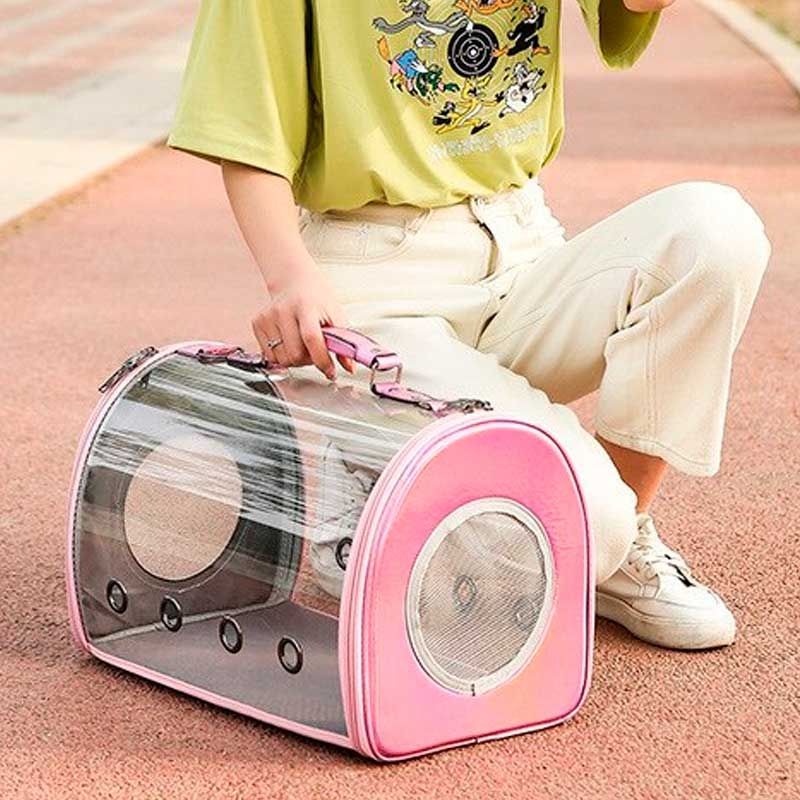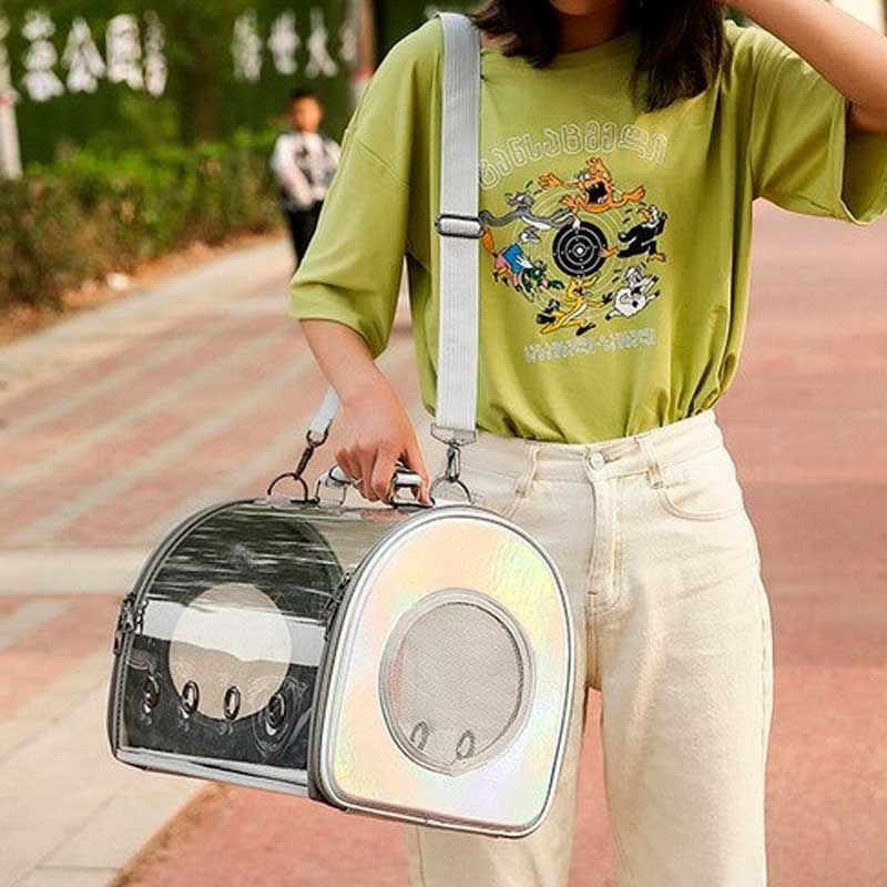 Сумка для тварин прозора 42х28х22 см срібло