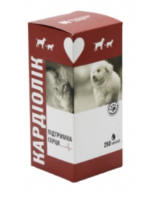 КАРДІОЛІК суміш кормових добавок для живлення серцевого мяза собак та котів з проблемами серцево-судинної системи, які страждають кардіоміопатією (в тому числі дилатаційною кардіоміопатією) та ендокардіозом (регургітацією крові при недостатності мітрального клапана), вродженими вадами серця, аритміями, серцевою нестачею обумовленою дирофіляріозом.