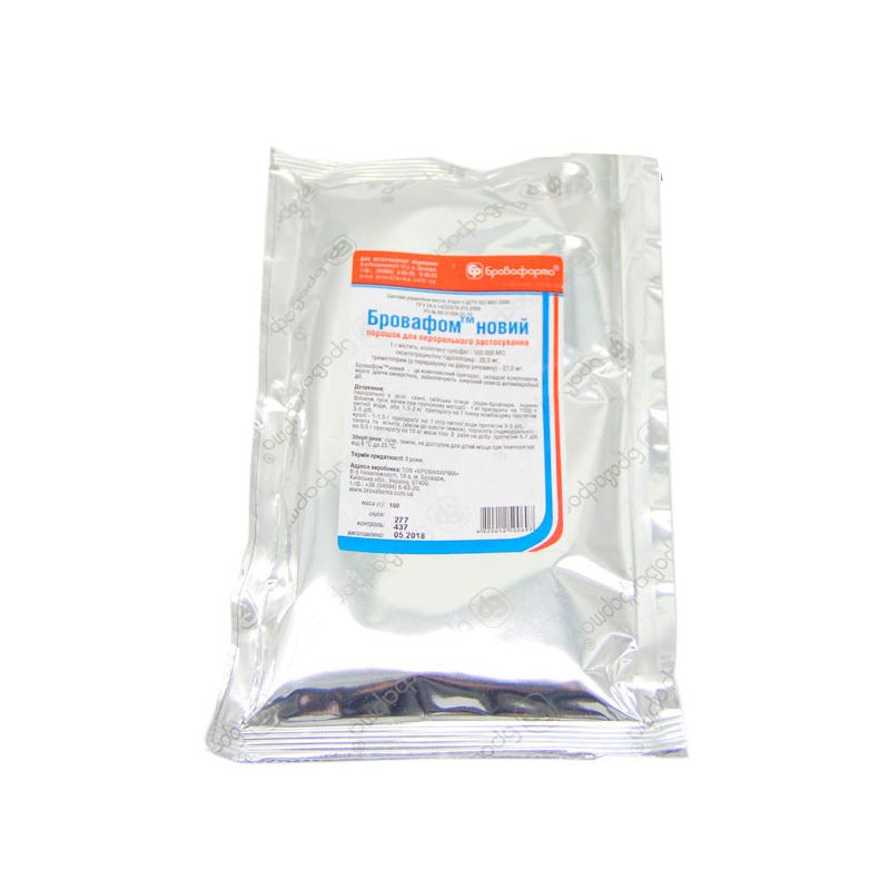 Опис БровафомновийБровафомновий є комплексним антибактеріальним засобом, застосовуваним як для курей, так і для іншої живності. Завдяки всеохоплюючому впливу Бравоформ новий купити рекомендують, коли життєво необхідний антибіотик з максимальним спектром дії. Така ефективність препарату пояснюється симбіозом трьох його основних речовин (колістіна сульфату, окситетрацикліну гідрохлориду итриметоприма). Застосовується ліки при терапії таких інфекцій:1. Для свиней: дизентерія, колібактеріоз, пастерельоз, сальмонельоз. Також недуги, повязані з травним каналом, органами дихання, викликані бактеріями, чутливими до основних компонентів ліки.2. Для кроликів, телят і ягнят (до 6-тижневого віку): ентерит, легеневі ураження, також викликані мікробами, що реагують на вплив компонентів препарату.3. Для домашньої птиці (курей, фазанів, індиків, гусей і качок): мікоплазмоз, колібактеріоз, пастерельоз, захворювання органів дихання.Препарат вводиться перорально у суворо додержуються дозах.Інструкція по застосуванню Для свиней і птахів використовується груповий спосіб. 1 кг препарата соединяют с 1000 л води, используемой для питья. Как вариант 2 кг препарата соединяют с тонной комбикорма (вскармливание на протяжении 5 дней) Кролям1-1,5 гр препарата добавляют в 1 литр води для питья и дают в качестве питья на протяжении от 3 до 5 дней Ягнятам и телятам (до 6-недельного возраста), поросятам (индивидуально) дают по 0,5 гр лекарства на 10 кг живого веса дважди в день на протяжении недельного периода.Лекарство имеет свои противопоказания. Его не применяют, если наблюдалась чувствительность к веществам, составляющим основу препарата. Також заборонено змішування ліки з кормом, призначеним для курей-несучок, чиї яйця використовуються людьми у їжу.Важливе застереження Забій тварин (телят, свиней,кролів, ягнят) можливий лише через 10 діб, а птиці - тільки через тиждень після прийому останньої дози ліків. Якщо мясо тварин (птахів) отримано раніше вказаних строків, воно підлягає утилізації або служить кормом для іншої, непродуктивною, живності.