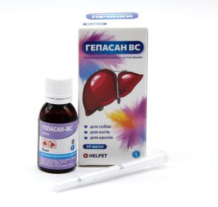 Кормова добавка Гепасан-ВС - гепатопротектор, який має сукупні фармакологічні властивості окремих складових з вираженим стимулюючим, захисним і жовчогінну дію на печінку, які покращують ті функції і метаболізм, оптимізуючи основні фізіологічні процеси.L-карнітину гідрохлорид-прискорює метаболічні процеси, продукт біосинтезу лізину иметионина. L-карнитинучаствует в расщеплении излишков жирних кислот, усиливая их окисление и транспортировкук митохондриям, играет важную роль в транспортировкеацетилкоензима А, увеличивает использование енергетических источников клетки, способствует нормализации обмена веществ в организме.Сорбитол- енергетическое вещество, накапливается в печени в форме гликогена, частично компенсируетнегативний енергетический баланс, имеет вираженное мочегонное действие.Магнію сульфат- сприяє виведенню токсинів з організму, збільшує секрецію жовчі і травних ферментів, збільшує перистальтику кишечника, поповнює організм іонами магнію.Холіну хлорид (вітамін В4)- ефективний гепатопротектор, який запобігає жировій інфільтрації печінки є важливим джерелом метальних груп, необхідних для біохімічних процесів, які відбуваються в організмі. Холіну хлорид входить в склад фосфоліпідів, які сприяють синтезу біологічних мембрани активації ферментних процесів.Бетаїн - природний джерело метельних груп і гепатопротектор, який позитивно впливає наобменвеществи покращує стан епітелію кишечника, обеспечиваетболее повне засвоєння енергії раціону, підвищує стійкість до стресів, має жовчогінну та ліпотропну дію, активує метаболічну метилювання в печінці і синтез фосфоліпідів мембран клітин.L-аргінін- стимулює клітинний метаболизмспособствует знешкодженню та виведенню аміаку, регулює рівень цукру в кровии зменшує молочнокислий ацидоз, зумовлений мязової навантаженням, активує систему азотовмісних ферментів, синтезує нитразогруппу, забезпечує необхідний тонусартерий.Використання кормової добавки призводить до підвищення витривалості організму, поліпшення функцийсердца, зменшення підшкірного жиру, збільшення мязової маси за счт прискорення обмінних процесів в клітинах, збільшення проникності в клеткивитаминов, мінералів і виведенню продуктів розпаду. Кормовая добавка уменьшает риск возникновения жировой дистрофии печени, нефроза, миокардоза, предотвращает возникновению стрессов (теплового, транспортного и других), повишает аппетит и усвоение кормов, улучшает пищеварениеи абсорбцию жиров, что особенно важно в период активного роста животних и птици.ПОКАЗАНИЯ К ПРИМЕНЕНИЮДля детоксикации печени, ускорения е восстановления в период интенсивной нагрузки, нормализации обмена веществ, повишения общей резистентности и продуктивности, профилактики стрессов, ускорения роста при откорме телят, коз, овец, свиней, лошадей, птици и кроликов.СПОСОБ ПРИМЕНЕНИЯ И ДОЗЫПрименяют перорально на протяжении 5-10 суток в дозах:- телятана откорме 0,5-1,0 млл жидкого корма- овци, кози, свиньи, лошади, кролики 0,5-1,0 млл питьевой води- птица 0,5-0,75 млл питьевой води.