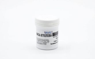 Однорідна мазь від світло-сірого до темно-коричневого кольору зі специфічним запахом. Состав1 г препарату містить: іхтіол 100 мл вазелін до 1 р. Фармакологічні свойстваИмеет антисептичну, протизапальну, кератолітичну, місцево знеболюючу дії. Антимікробна дія зумовлена наявністю сірки. При нанесенні препарату на рану спостерігається звуження судин, зменшення секреції та ексудату, а також прискорення регенерації пошкодженої тканини. ПрименениеНаружно для лікування великої рогатої худоби, коней, овець, кіз, свиней, собак і котів, при захворюваннях шкіри (опіки, рани, екзема, дерматит, фурункульоз, піодермія) копит артриті, невралгії, тендените, тендовагініті, бурсит, маститі. ДозировкаНаружно. На уражену ділянку шкіри мазь наносять тонким шаром 1-2 рази на добу. Тривалість курсу лікування залежить від характеру і симптомів захворювання, може тривати до 14 діб. Кількість мазі для одноразового нанесення залежить від розміру ураженої ділянки шкіри. Для лікування опіків можна застосовувати мазеві повязки. Перед нанесенням мазі ділянку шкіри очищають від механічних включень, бруду, залишків ексудату, вовни. ПротивопоказанияНе застосовувати при підвищеній індивідуальній чутливості (алергії) до препарату. Не допускати потрапляння на слизові оболонки. Несумісний з солями йоду, алкалоїдами. ПредостережениеПри тривалому додатку можливе подразнення шкіри в місцях нанесення мазі. ХранениеСухое темне, добре вентильоване приміщення на стелажах при температурі від 5 до 25 С. Не зберігати разом з харчовими продуктами. Термін придатності 5 років.Як купити Мазь Іхтіолова 10 50г.Для купівлі будь-якого товару, який Вас цікавить достатньо звязатися з нашими менедежерами або оформити замовлення через корзину.