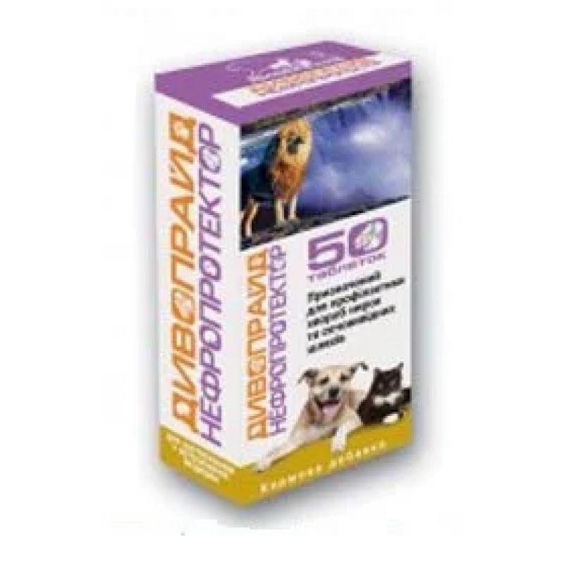 Склад і форма випуску. 1 таблетка (0,12 г) містить діючі речовини (мг): мучниці екстракт -15, пол-пала екстракт - 5. Таблетки масою 0,12 г по 10 таблеток у блістері, по 5 блістерів у картонній коробці.Фармакологічна дія. Екстракт мучниці отриманий з листя рослини мучниця звичайна (Arctostphylos va-rsi), містить діючу речовину - глікозид арбутин, який розщеплюється в організмі з утворенням гідрохінону, а також органічні кислоти, дубильні речовини, флавоноїди, ефірну олію. Екстракт мучниці виявляє діуретичну, антисептичну дію, зумовлену сильними бактерицидними властивостями гідрохінону, який утворюється в організмі в результаті гідролізу арбутину і виділяється з сечею. Діуретична дія посилюється спазмолітичною дією флавоноїдів, дубильні речовини володіють бактерицидною і вязким дією. Пол-Пала екстракт - засіб рослинного походження, що отримується з трави ерви шерстистої або пол-пала (Aerva Lanata L.). Трава пол-пала містить у своєму складі алкалоїди ервін метилервин, пектинові речовини, похідні олеанолової кислоти, ферулоиламиди, флавоноїди, фенольні кислоти, солі калію й інші біологічно активні речовини. Пол-Пала екстракт має бактерицидну і сечогінну дію, сприяє виведенню піску з нирок і розчиненню каменів, очищає сечової і жовчний бульбашки, виводить з організму радіонукліди, нормалізує процес обміну речовин в організмі.Дози і спосіб застосування. Собакам і кішкам вагою до 5 кг - 1 табл. 2 рази на добу. Собака і кішкам вагою 5-10 кг - 1 табл. 3 рази на добу. Собак вагою більше 10 кг 1-2 табл. 3 рази на добу.Побічні дії. При дотриманні зазначеної дози не спостерігаються.Протипоказання. Гіперчутливість до компонентів препарату.Особливі вказівки. Під час застосування таблеток тваринам необхідно вживати достатню кількість води.Умови зберігання. У упаковці при температурі від 0 С до 30 С. Термін придатності - 3 роки.Як купити Нефропротектор для нирок 50тб, ДивопрайдОформити замовлення через корзинуОформити замовлення по контактним телефонам