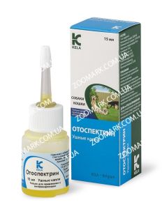 Склад: 1 мл містить: Неоміцину сульфат 5000 IU. Поліміксину В сульфат 10 000 IU. Лідокаїну гідрохлорид 40 мг Сульфирем 50 мг Дексаметазон 1 мг Розчинники qsЦелевое використання: собаки, кошкиДозировка і застосування: Перед використанням збовтати. Отоспектрін потрібно призначати один або два рази в день. Кількість розчину, який потрібно закапати у вухо, залежить від розміру тварини і стадії інфекції. - Малі собаки (до 5 кг) і кішки: 3 краплі - Собаки середніх розмірів (5-10 кг): 5 крапель - Великі собаки (більше 10 кг): 10 крапель. Лікування слід продовжувати щонайменше протягом тижня у випадках гострого отиту, і протягом більш тривалого періоду при хронічному отиті.Метод і шляху введення: Шляхом вприскування у вушний канал. Перед використанням збовтати. Порада: перед початком лікування потрібно оглянути і почистити вушний канал. Вовна та інші обєкти, які можуть створювати перешкоду або дратувати вушний канал, потрібно видалити.Протипоказання: невиявлениПобочние ефекти: Послезакапивания Отоспектрін може трапитися еритема. Однак такі випадки зустрічаються рідко.Зберігання: зберігати в прохолодному (до 15С) та захищеному від світла місці.Упаковка: Полімерний флакон 15 мл Як купити Отоспектрін 15 млОформить замовлення через корзинуОформить замовлення за контактними телефонами