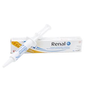 Candioli Ренал N препарат у формі пасти, який містить фруктоолігосахариди, поліфеноли оливкової олії, живі бактерії Lactobacillus acidophilus та вітаміни, сприяючи антиоксидантному захисту нирок та нормальному функціонуванню кишечника у собак та котів.Чому рекомендуємо купити добавку для собак та кішок Candioli Renal N:Покращує травний процес, допомагає за відсутності апетиту, зменшує симптоми блювання та діареї та значно зменшує виділення азотних токсинів.Стабілізує артеріальний тиск, має протизапальну та антиоксидантну дію.Знижує синтез індоксил сульфату та Р-крезолу - двох важливих уремічних токсинів.Містить пробіотики живі бактерії Lactobacillus acidophilusПокращує стан кишкової мікрофлори, сприяє зростанню корисних бактерій та усуває патогенні бактерії.Містить речовини, які стимулюють процес кровотворення та нейтралізують дію вільних радикалів у ниркахУ складі Melofeed одна з основних антиоксидантних захисних систем, що діють на нирковому рівніЗасіб поміщений у шприц-дозатор, зручно у застосуванніСклад:Фруктоолігосахариди 25, олія сої та соняшника, фруктоолігосахариди ферментовані (ImmunoFOS), екстракт солоду, гліцерин моностеарат, продукти переробки дині (Melofeed), мальтодекстрин.Добавки (на 1 кг):вітамін Е - 25000 МО, піродоксин гідрохлорид - 10000 мг, фолієва кислота - 4000 мг, ціанокобаламін - 100 мг, Lactobacillus acsdophilus 6.3х1011 КУО0000Інструкція по застосуванню:Давати безпосередньо до рота тварини або додавати у вологий кормДобова норма з розрахунку 1 мл на 5 кг маси тіла твариниРекомендований курс прийому 30 днівЗабезпечити вихованцю постійний доступ до свіжої питної води.Упаковка:15 мл (у шприці)
