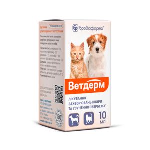 Состав1 мл препарату містить:триамцинолон 1 мгметионин 50 мгянтарная кислота 2 мгвитамин В2(рибофлавін) 5 мгвитамин В3(PP, нікотинамід) 10 мгвитамин В6(піридоксин) 3 мгФармакологические свойстваТриамцинолон синтетичний фторвмісний глюкокортикоїд з виражену протизапальну, протиалергічну, десенсибилизирующим і антитоксичну дію.Протизапальні властивості обумовлені стабілізацією мембран клітин, у тому числі лаброцитов і органел (лізосом), пригніченням активності фосфоліпази A2, припиненням вивільнення арахідонової кислоти з фосфоліпідів клітинних мембран і зниженням рівня продуктів її метаболізму. Пригнічує гіалуронідазу, гальмує поділ лаброцитов і зменшує їх дегрануляцію, пригнічує синтез фактора активації тромбоцитів і проліферацію сполучної тканини. Завдяки зниженню кількості Т - і B-лімфоцитів, порушення їх взаємодії, зупинці міграції B-лімфоцитів забезпечує імунодепресивну і протиалергічну дію. Зменшує вміст імуноглобулінів у сироватці крові, пригнічує кооперацію фагоцитів і лімфоцитів. Протишокову і антитоксичну дію базується на зниженні проникності ендотелію судин, мембранопротективних властивості та активації ферментів печінки, що беруть участь у метаболізмі ендо - та ксенобіотиків.Біодоступність тріамцинолону після перорального застосування становить 20-30. Дія починається через 1-2 години і триває протягом 6-8 годин. Період напіввиведення з сироватки крові становить 2-5 годин, із тканин-18-36 годин. Триамцинолон на 40 звязується з білками плазми крові, в основному з глобулінами. Метаболізується в печінці, невелика кількість-у нирках. Виводиться з організму в основному з сечею у вигляді неактивних метаболітів.Метіонін-незамінна амінокислота, що є джерелом сульфгідрильних і метильних груп, має ліпотропну дію (попереджає накопичення жиру в печінці при недостатку холіну, який бере участь у синтезі фосфоліпідів). Знешкоджує токсичні продукти обміну речовин шляхом метилування та транссульфурирования.Янтарна кислота прискорює процеси регенерації пошкоджених клітин шкіри, стимулює і нормалізує енергетичний і пластичний обміни, має антитоксичну дію, підсилює біохімічні та фізіологічні відновні процеси в епідермісі та усуває метаболічний ацидоз в тканинах.Вітаміни групи Виграют важливу роль в обміні речовин, що беруть участь у клітинних окислювально-відновних реакціях амінокислот. Ці вітаміни значно покращують стан шкірних покривів, особливо при себорейному дерматиті і пелагрі. Вони легко всмоктуються у тонкому кишечнику та виводяться з сечею у вигляді різних метаболітів.ПоказанияЛечениесобак і котовпри запальних, алергічних, аутоімунних та інших захворюваннях шкіри і суглобів.ПРИМЕНЕНИЕСпособ застосування та дозиПеред використанням флакон з препаратом ретельно струшують і застосовують внутрішньо один раз на добу, під час ранкового годування з невеликою кількістю корму або вводять безпосередньо на корінь язика з допомогою шприца-дозатора. Дози препарата для лечения животних в первие 4 суток приведени в таблице.Вид животногоМасса тела (кг)Суточная доза (на животное, мл)Собаки100,5110-20120-301,530-40 и более2Коти1-30,253 и более0,5Для лечения в последующие 8 суток дозу уменьшают вдвое. После согласования с ветеринарним врачом курс лечения может бить продлен.ПредостереженияПри применении препарата в рекомендуемих доз