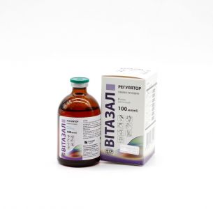 Опис ВитазалаВитазал ветеринарний препарат, розроблений для комплексного впливу на організм домашніх тварин. Це загальнозміцнюючий, тонізуючий засіб стимулює обмін речовин, регулює роботу життєво важливих органів тварини.Витазал, по суті - стимулятор росту. Допомагає одужання після тяжких захворювань і операцій.У складі средствабутафосфанусиливает використання глюкози крові, активізує роботу печінки, прискорює обмінні процеси, підвищує опірність організму несприятливим факторам. Один мл містить 100 мгбутафосфана. Сполуки органічного фосфору не мають тенденциикумулироватьсяв організмі, не дають непотрібних ефектів, що властиво сполук неорганічного фосфору.Ціанокобаламін (вітамін С) 1 мл містить 0,05 мг. Має загальнозміцнюючу, кровотворних дією. Усиливает циркуляцию кислорода крови, нормализует пищеварение, улучшает работу нервной системи, ускоряет процесс переваривания и усвоения пищи.Витазалкупить всегда можно в аптеке для животних по рецепту ветеринарного врача или в нашем интернет-магазине.Инструкция по применениюРекомендовано сельскохозяйственним животним, а также кошкам, собакам. Часто назначают, как общеукрепляющее средство, источник калия, магния, при сложних родах и хирургических операциях, после физических нагрузок (например, лошадей).Витазалвводят подкожно, внутримишечно, или с питьевой водой, например птицам. Дозування наступна:собаки 0,5 5,0 млкошки 0,5 2,5 КРСи коні 10 25кози, вівці 2,5 8,0 лошата і телята 5 12поросята 1,0 2, 5В особливих випадках, через добу роблять повторну інєкцію.Курям-несучкам і великим породам курей вливають ліки в поїлку 2,0 3,0 мл на один літр води. Курчатам і дрібним порід курей 1,0 1,5 мл на літр води.Форма випуску препарату розчин, розлитий по флаконам 50, 100 і 10 мл Ампули виконані з темного скла, закриті гумовими пробками, герметично запаяні алюмінієвими ковпачками. Зберігати в прохолодному темному місці.