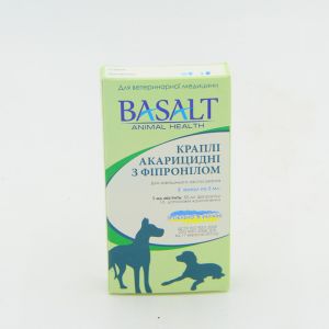 ОписПрепарат являє собою маслянисту рідину, зі слабким специфічним запахом.СкладКраплі містять діючої речовини 5 фипронила і допоміжні компоненти.СвідченняПрофілактика і лікування хвороб собак, викликаних блохами, вошами, волосоїдів, коростяний і іксодовими кліщами.ЗастосуванняСрезать кончик пипетки, раздвинуть шерсть и нанести препарат на кожу в несколько точек вдоль позвоночника ( у основания голови, так, чтоби предотвратить слизивание препарата животним). Примерно за 24 часа препарат сам распределяется по всей поверхности тела собаки. Каждая пипетка содержит 1 дозу препарата для лечения или профилактики против блох, вшей и клещей 1 животного весом от 5-ти до 10-ти кг. Для собак весом от 10 до 20 кг используют 2 дози препарата. Если собака весит более 20 кг используют 3 дози на одно животное. С профилактической целью животное обрабативают нанося капли на кожу 1 раз в 2 месяца против клещей -1 раз в месяц.ПредостережениеНе рекомендуется купать животное за 3 дня до и 3 дня после обработки. Капли на холку не рекомендуется применять щенкам младше 3-х месячного возраста, а также собакам, чей вес менее 5-ти кг. При попадании препарата в ротовую полость у животного может наблюдаться повишенное слюноотделение, которое прекращается без врачебного вмешательства. По окончании работи с препаратом необходимо вимить руки тёплой водой с милом.ХранениеЗберігають препарат у сухому, захищеному від світла місці, недоступному для дітей і тварин, при температурі від 0 до 30 градусів С.