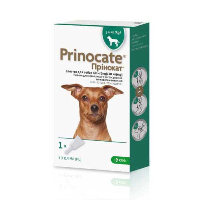 Принокат краплі протипаразитарні для собак спот он 3 піпетки 40мг 10мг 0,4 мл (до 4кг)