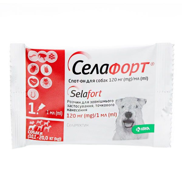 Селафорт краплі від бліх, кліщів і гельмінтів для собак 10,1-20 кг (120мг1мл)