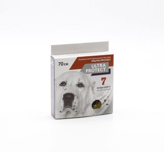 Ultra Protect нашийник для собак інсектоакарицидний препарат, призначений для знищення бліх та іксодових кліщів, що паразитують на собаках, а також для захисту від повторного зараження.Діючі речовини:пропоксур, флуметрин (10 г нашийника містять 0,83 г пропоксура та 0,245 г флуметрина).Опис:Нашийник являє собою полімерну стрічку довжиною35 смз петлями для фіксації. Випускається убілому, червоному або синьому кольорі.Показання:Профілактика та лікування собак при ураженні ектопаразитами:блохи (Ctenocephalides canis)іксодові кліщі (Rhipicephalus sanguineus,Ixodes ricinus).Застосування:Один нашийник призначенийдля однієї тварини.Відкрийте упаковку, розгорніть нашийник і закріпіть вільно навколо шиї собаки так, щоб між шиєю та нашийником залишався проміжок у два пальці.Нашийник не повинен здавлювати шию або заважати росту тварини.Постійне використання забезпечуєзахист до 7 місяців.При зниженні ефективності нашийник необхідно замінити.Перед купанням нашийник бажано знімати, оскільки надмірне зволоження знижує його дію.Протипоказання:Не застосовувати разом з іншими інсектицидними засобами.Не використовувати у хворих або ослаблених тварин.При появі подразнення шкіри зняти нашийник і звернутися до ветеринарного лікаря.Умови зберігання:Зберігати у закритій упаковці, у сухому місці, недоступному для дітей і тварин, окремо від кормів і продуктів харчування, при температурі від0 до +25C.Термін придатності:у закритій упаковці 5 років,після розкриття 6 місяців.