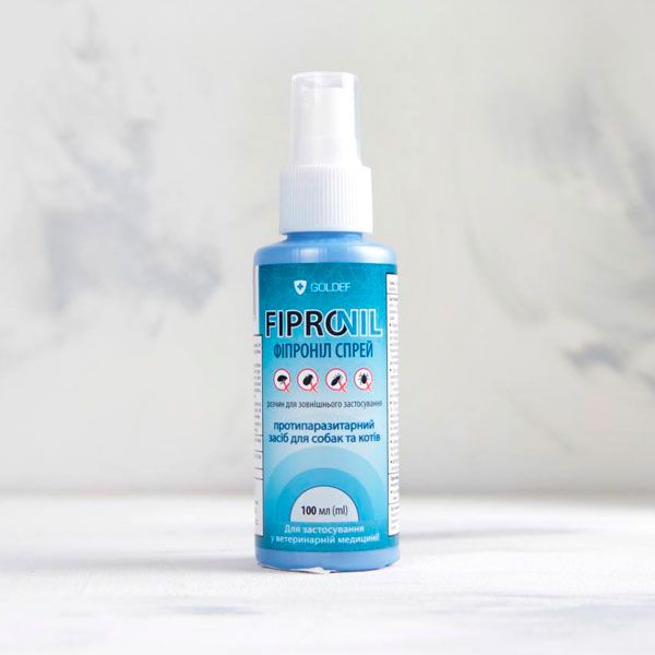 Фіпроніл спрейЗа допомогою цього препарату можна швидко і надовго позбутися бліх, вошей, комарів, вушних (отодектози) та іксодових кліщів у ваших улюбленців.Фармацевтична формаРозчин для зовнішнього застосування.Призначено для собак та кішок.Показання до застосуванняДля лікування та профілактики зараження паразитами, такими як блохи (Ctenocephalides) та кліщі (Rhipicephalus, Dermatocentor, Ixodes), у собак.Для лікування та профілактики зараження паразитами, такими як блохи (Ctenocephalides felis) та кліщі (Rhipicephalus, Ixodes), у кішок.Лікування та профілактика блошиних алергічних дерматитів (БАД) у кішок та собак.Профілактика та лікування собак та кішок від зараження пухоїдами.ПротипоказанняНе використовувати для лікування цуценят та кошенят віком до 2-х днів.Не використовувати для лікування тварин, хворих на загальні захворювання, лихоманку тощо, або тварин на стадії одужання.Не використовувати для лікування кроликів, щоб уникнути несприятливих наслідків, аж до смерті.Побічні ефектиОблизування тварин обробленої поверхні викликає короткочасне підвищення слиновиділення, в основному через хімічний склад носія.У вкрай поодиноких випадках після застосування препарату проявляються несприятливі реакції, такі як еритеми, що проходять, свербіж або плішивість.В окремих випадках після застосування препарату спостерігалися підвищене слиновиділення, реверсивні неврологічні симптоми (гіперестезія, депресія, підвищена нервозність), блювання та утруднення дихання.Спеціальні рекомендації щодо застосуванняСлід вжити всіх необхідних заходів, щоб тварини не облизували один одного після обробки.Не дозволяйте собаці плавати у відкритих водоймах протягом 2 днів після обробки.Після обробки в шерсті тварин можуть залишатися поодинокі паразити. Саме тому неможливо повністю виключити ймовірність передачі інфекційного захворювання за несприятливих умов утримання.Використання в період вагітності та лактаціїСпрей Фіпроніл можна застосовувати для лікування тварин у період вагітності та лактації.Дозування та метод застосуванняСпосіб застосування:зовнішньо, розпорошити на поверхню вовни.Дозування:нанести від 3 до 6 мл препарату з розрахунку на 1 кг ваги тварини (7,5 15 мг фіпронілу на кг ваги), тобто. 2 4 натискання на пульверизатор на кг для флаконів по 250 мл та 500 мл, або 6 12 натискань на пульверизатор для флаконів по 100 мл.Спосіб застосуванняРозпорошіть препарат на всю шерсть тварини з відстані приблизно 10 20 см.Розпорошуйте у напрямку зростання вовни, щоб вся вовна просочилася до шкірного покриву.Для довгошерстих тварин: розчешіть шерсть, щоб препарат проник до шкіри на спині, боках, животі, лапах, загривку і хвості.Для обробки морди і очей тварини нанесіть фіпроніл спрей на руку в рукавичці і мяко утріть препарат в шерсть тварини.Продовжуйте до природного висихання, рушники не використовуватиПрепарат біологічно активний протягом до 5-ти тижнів проти кліщів, від 1 до 3 місяців проти бліх та до 63 днів (для собак) та 42 днів (для кішок) проти пухоїдів.Якщо тварина утримується на вулиці, мінімальний інтервал між обробкою 4 тижні.